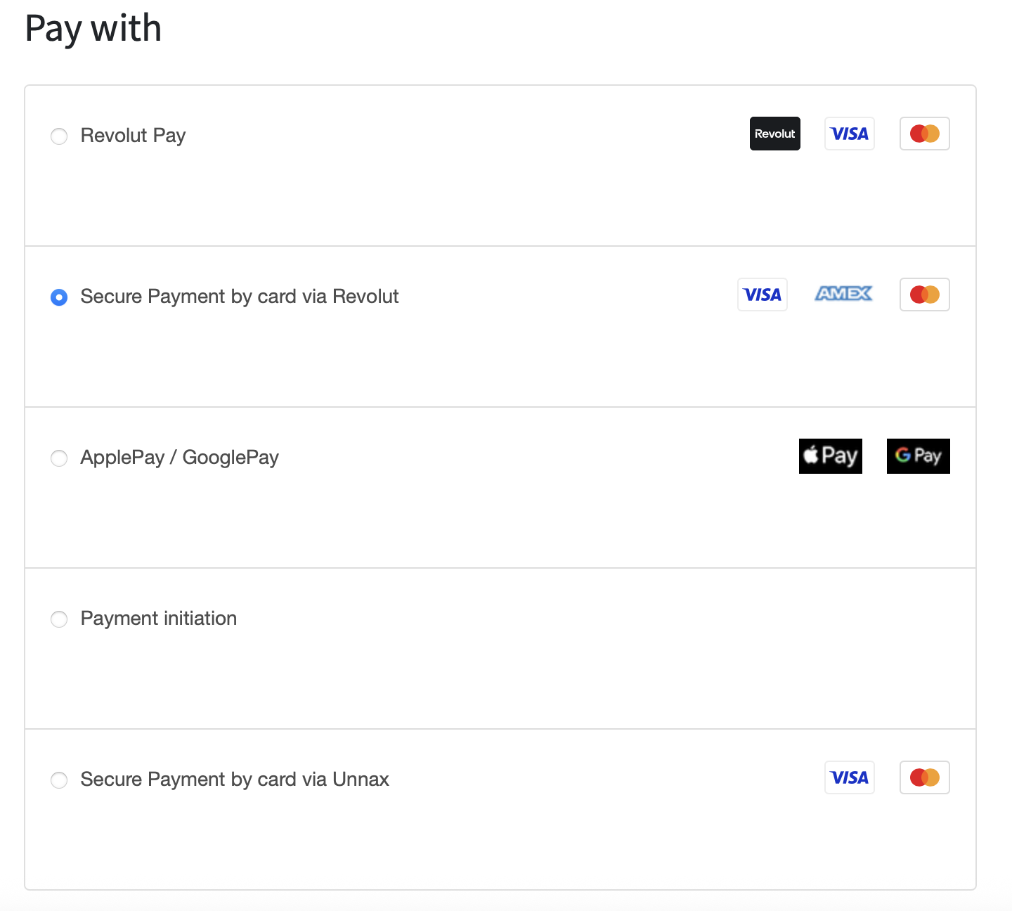 1. Sélectionnez « Paiement sécurisé par carte via Revolut ».